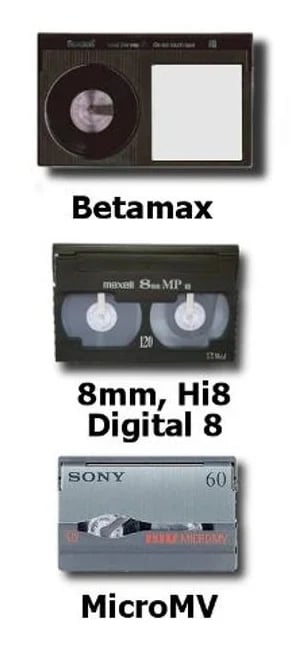 The six videotape formats shown are the most common type we transfer to the media of your choice. However, we can also transfer Video 2000 and Umatic-S.
